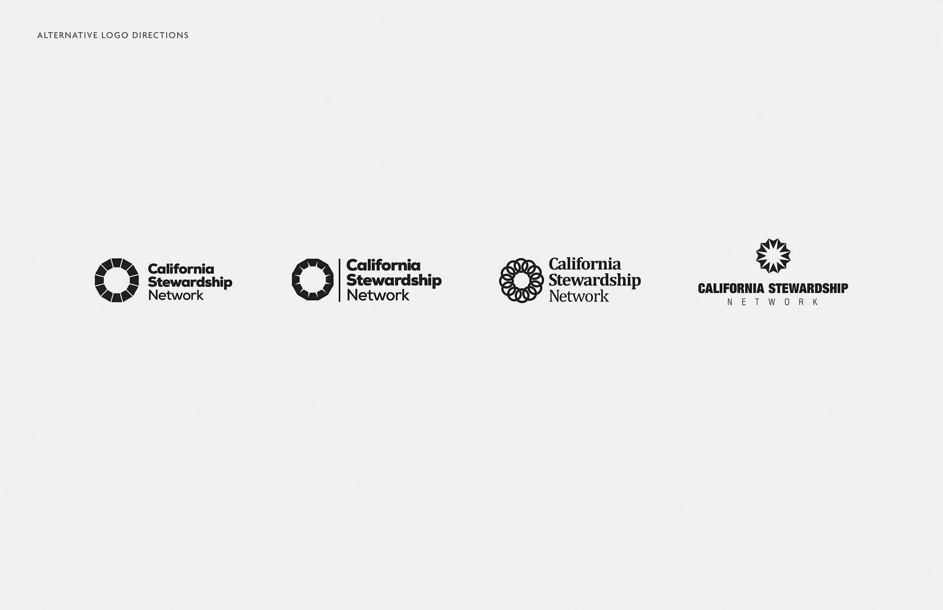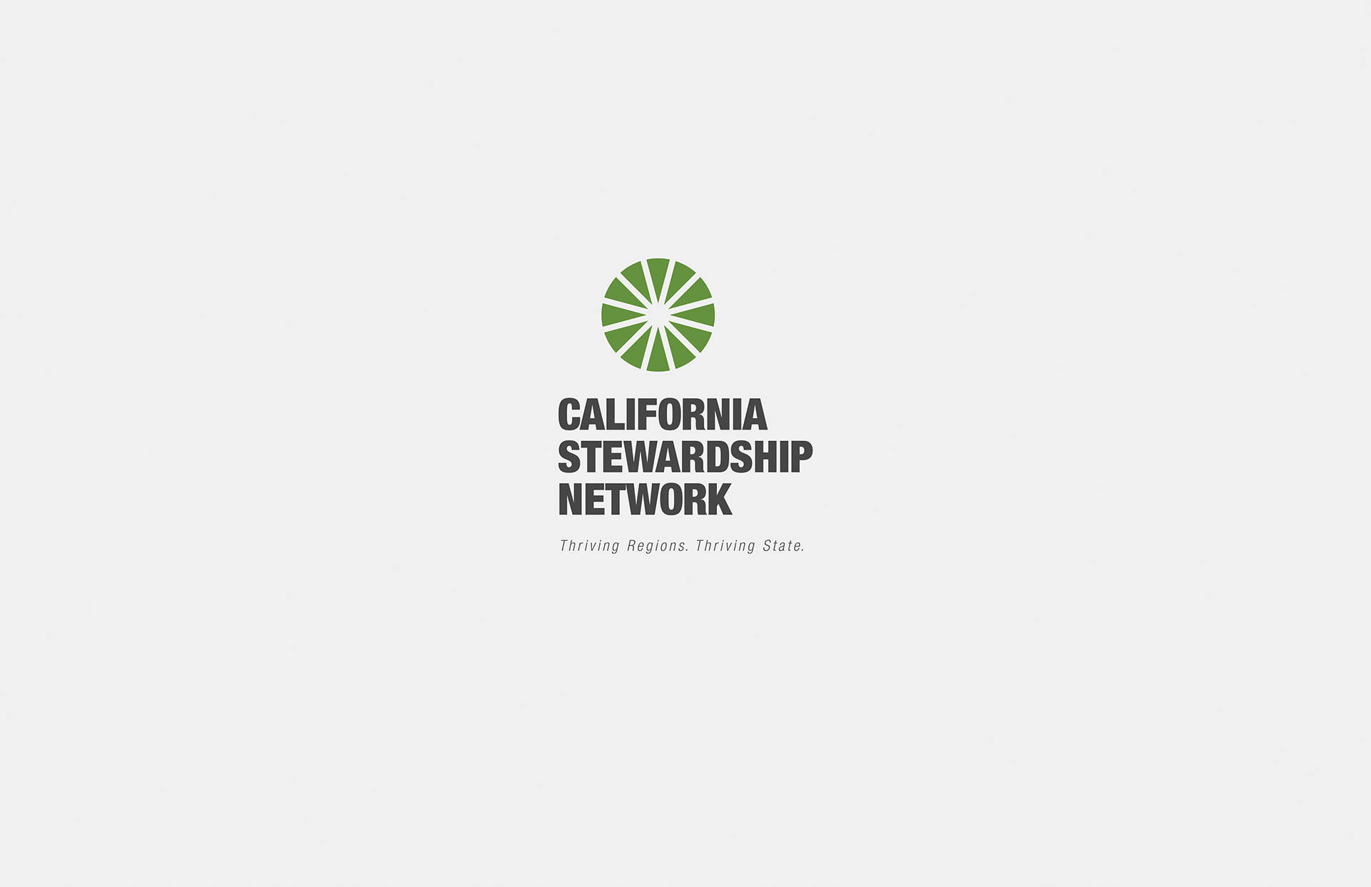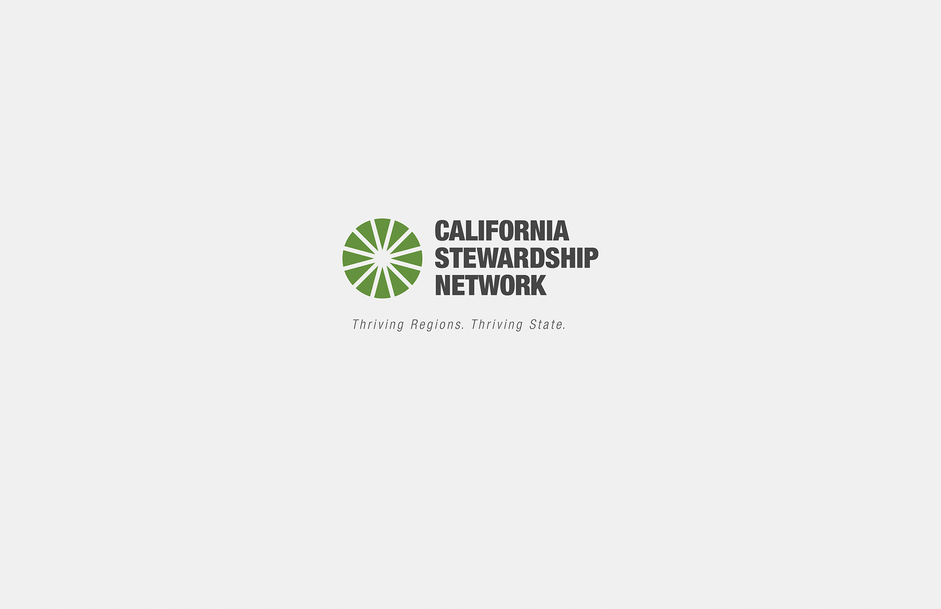 A new identity for California Stewardship Network. CSN is a state agency that organizes the talents of 12 regional boards that work together as a team to benefit the state as a whole